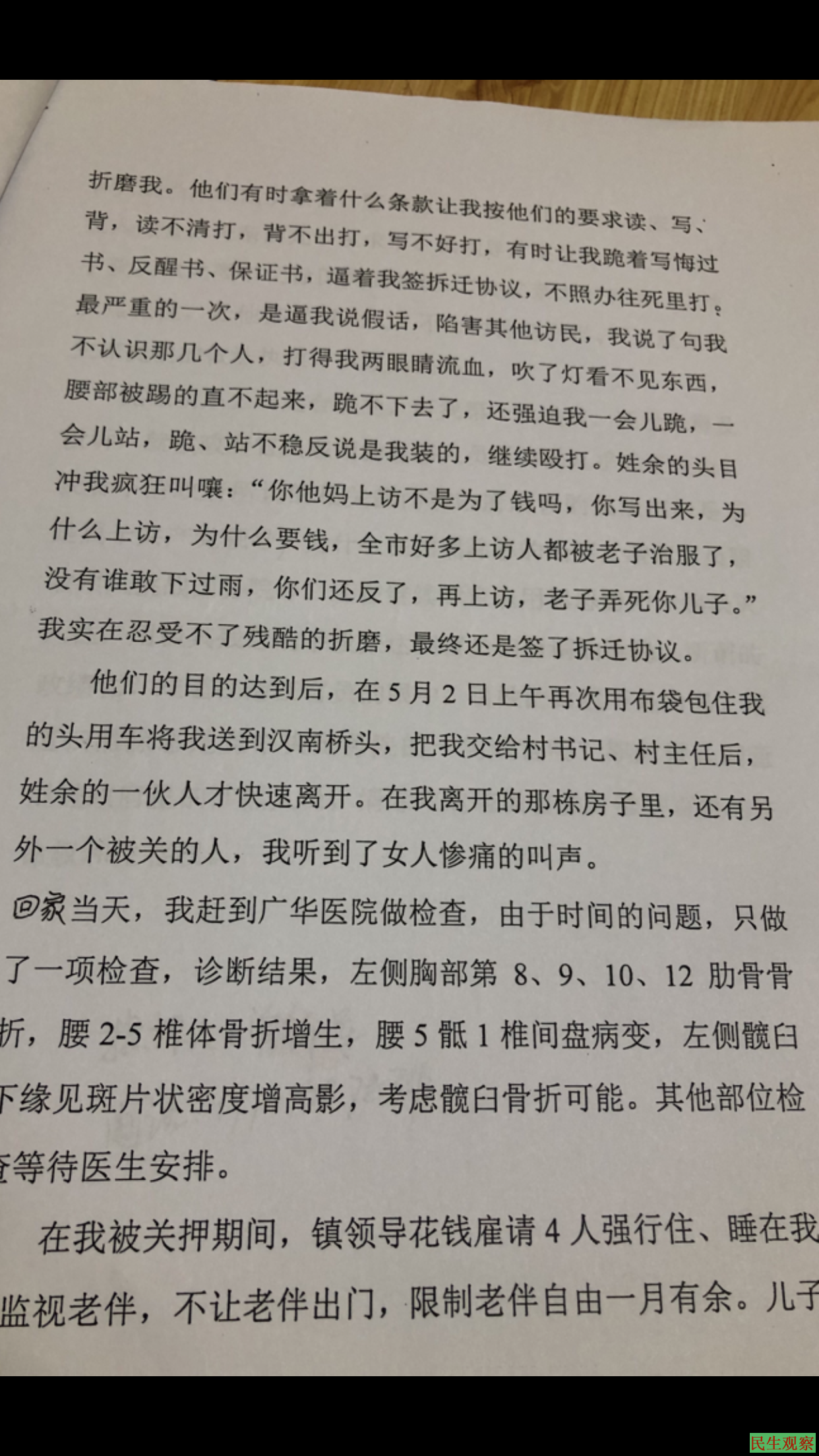 从维权到现在已经快三年多了,遭受非法关押殴打虐待,迫害导致身体深受其害,留下后遗症,打断几根肋骨,至今为止无人查管,问题一直得不到解决。