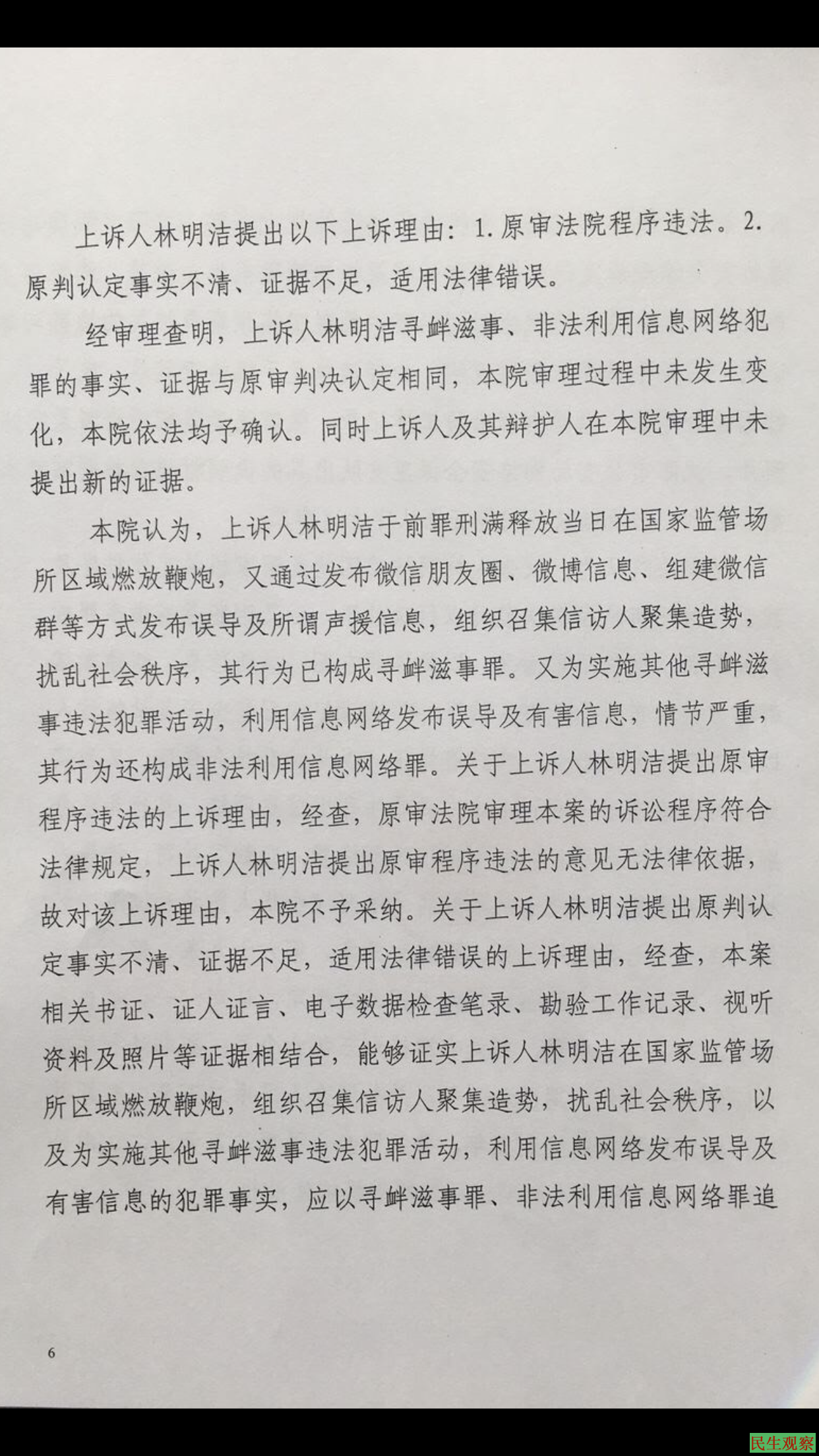 2020年7月17日,林明华以寻衅滋事加妨害公务被判3年,弟弟林明洁以寻衅滋事加非法利用信息网络被判5年。兄弟二人不服上诉,卢廷阁作为家属聘请的律师,终于历尽艰难会见到了兄弟二人,一致要求二审法院开庭审理,以便查清事实、还原真相,纠正一审程序违法和错误判决,从而作出公正判决。但另人不解的是,二审法院毫不理会,2020年11月23日直接维持原判,二审的监督作用荡然无存。
