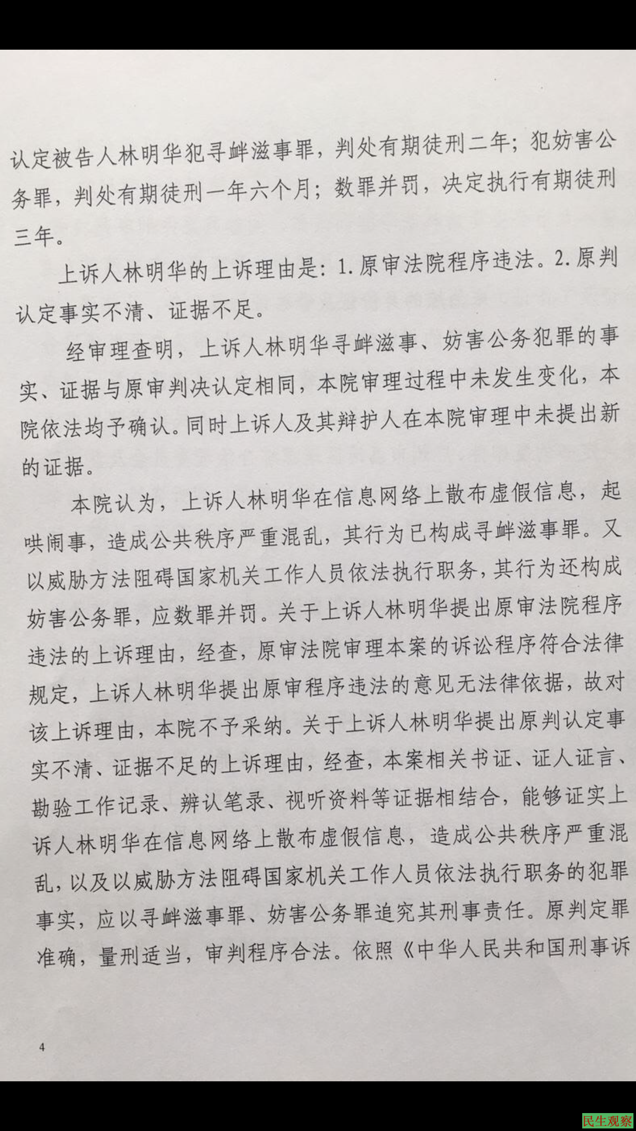 2020年7月17日,林明华以寻衅滋事加妨害公务被判3年,弟弟林明洁以寻衅滋事加非法利用信息网络被判5年。兄弟二人不服上诉,卢挺阁作为家属聘请的律师,终于历尽艰难会见到了兄弟二人,一致要求二审法院开庭审理,以便查清事实、还原真相,纠正一审程序违法和错误判决,从而作出公正判决。但另人不解的是,二审法院毫不理会,2020年11月23日直接维持原判,二审的监督作用荡然无存。