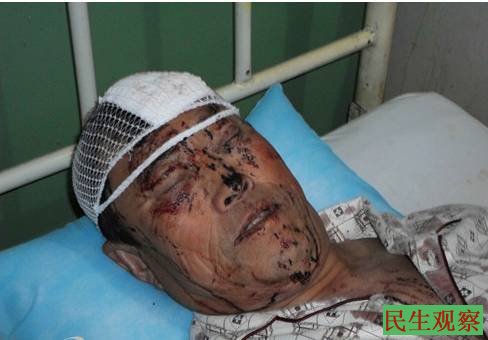 我和老伴都被他们打伤,被送到当地徐家店镇医院接受治疗。我被诊断为脑震荡,头部不定时地疼痛,大脑经常迷糊。
