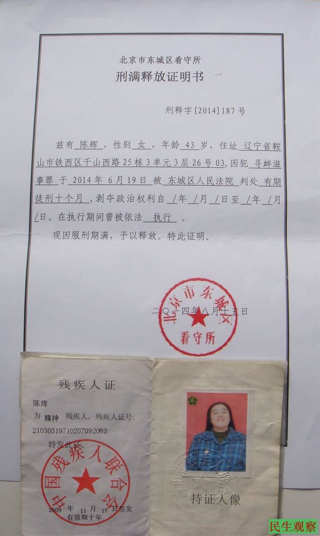 辽宁鞍山访民陈杰等不服天安门撒材料被判刑