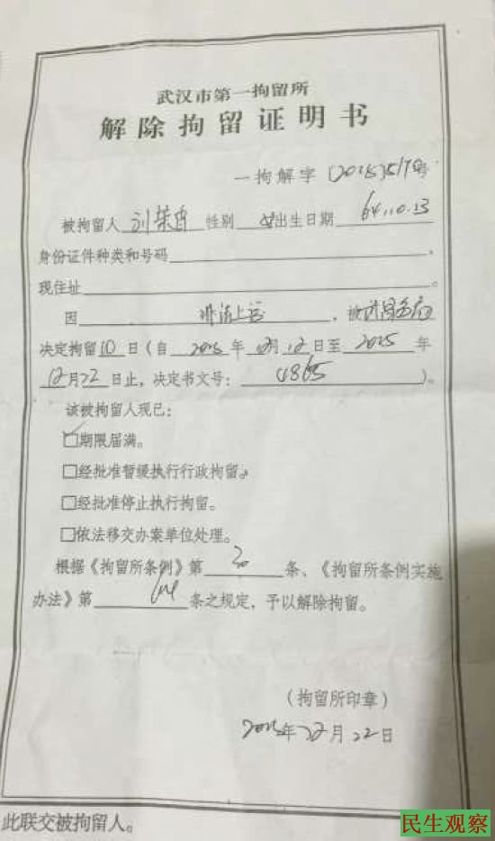 武汉刘茉香:举报贪腐被拘留十天的经历 |