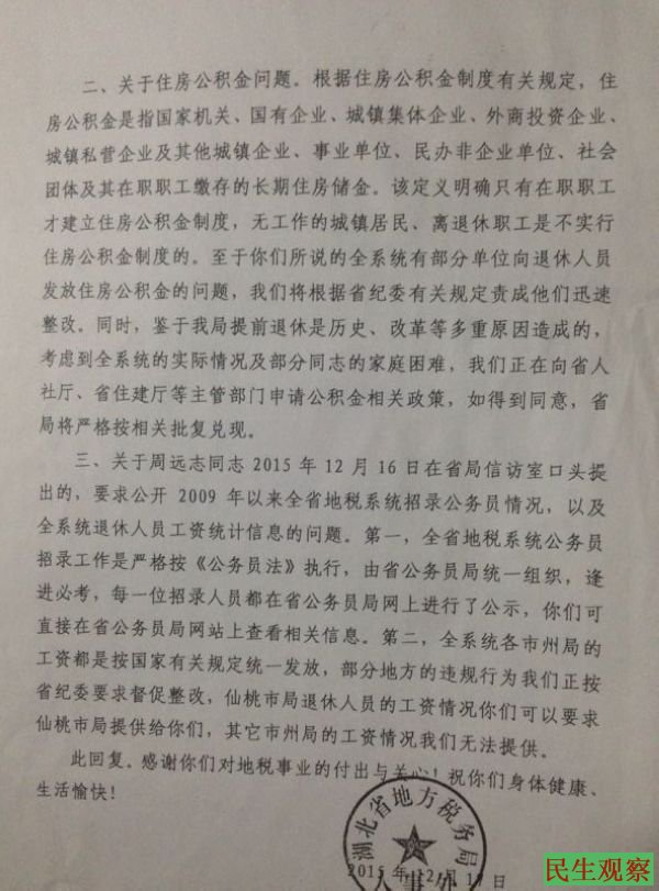 湖北地税三千人员“被退休” 职工认为非法进行申诉
