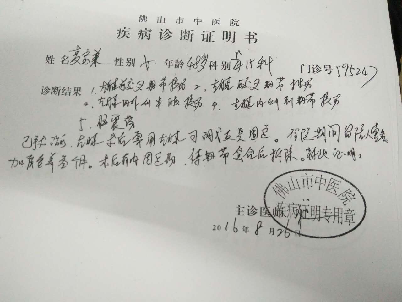 医院诊断书