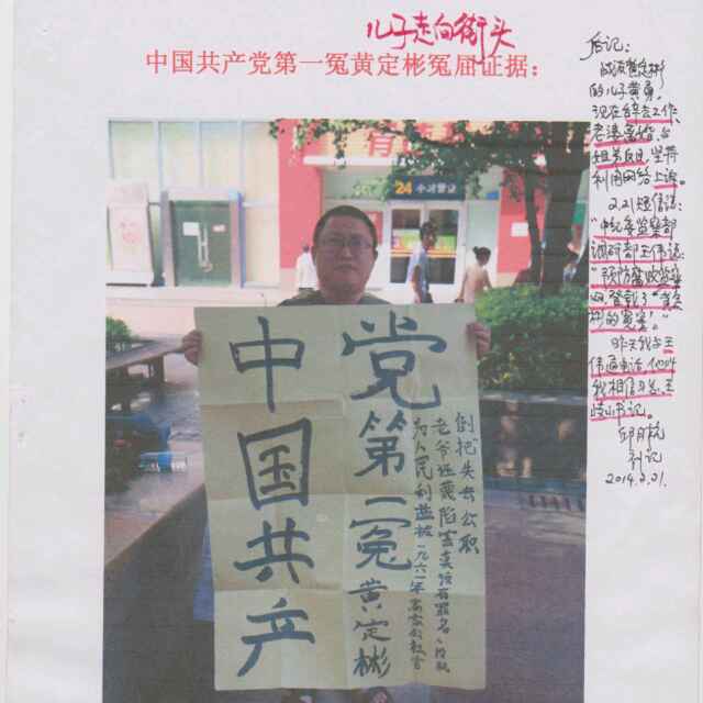 黄定彬是一名入朝作战老兵,在任正排级少尉司务长职务时转业回乡,文革中受到关押迫害,之后随获平反,但在其退休时,部队转业档案、地方干部工作档案同时离奇丢失,地方政府还停发了黄定彬参加朝鲜战争的国家补贴,迫使黄定彬因查找不到档案下落,无法弥补其损失而上访。