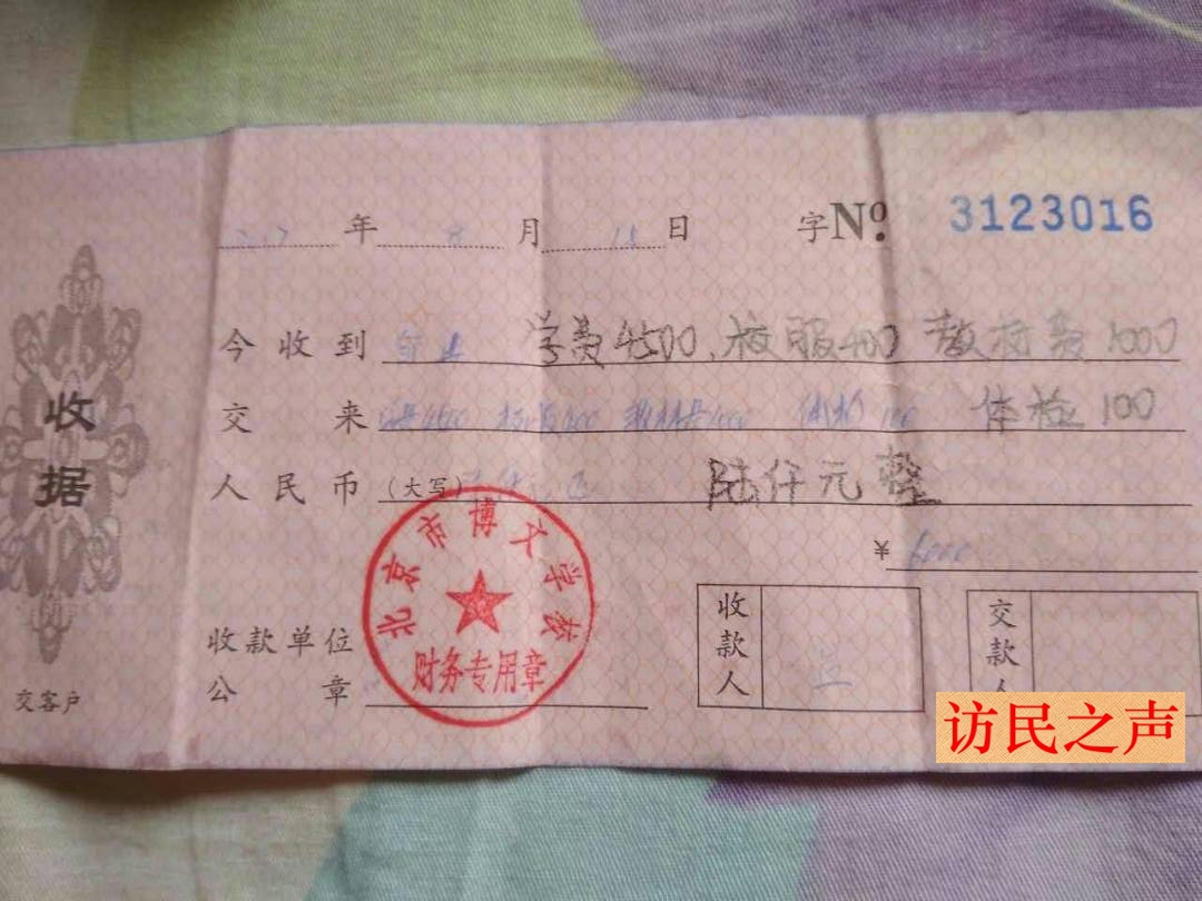 昨日,辽宁访友祝忠孝发来消息称:自冉崇碧被重庆地方政府接回刑拘之后,至今没有确切消息传来,其女儿滞留在北京,在众多好心人的照顾下仍在继续完成学业。但面对其高额学费,访友们一筹莫展,不知该如何应对。