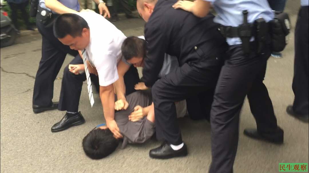 2018年5月16日早晨,我与代理律师宋玉生、文东海提前赶到听证会现场即北京律协大门外,听证会门口严防死守不允许包括记者、公民、律师乃至我的亲属进入参加旁听,周围遍布警车和许多不明身份的人。由于听证时间未到,有记者表示要采访我,我欣然同意,就与记者朋友们站在路边的便道上,后来知道其中包括:香港Now新闻还有日本NHK等媒体,话题刚要展开一群自称警察的人上来将记者与我隔开,并以查验身份、维持秩序等理由将现场人员驱赶开,我作为当事人,就反复与那些所谓执法者交涉,要求他们首先示明身份,并说明执法依据和理由,如果执法就应当打开执法记录仪等,并告诉他们这里既不是案发现场,又没有任何正当理由,警察权力是有边界的不能滥用权力,要尊重新闻自由和记者,尊重律协,结果他们不听,不但无端查验驱赶现场人员,而且还以查验为名扣押记者的证件(后来得知该记者是徐骏铭),记者和公民本来没有义务配合滥用职权的违法行为,出于善意和尊重记者向他们提供了证件却遭非法扣压,私人财物被扣押后记者焦急万分跟他们交涉,我在现场也帮助记者讨要证件,后来在我的协助下记者拿回了自己的证件,而后一群不明身份的人像暴徒一样上来围抢记者的证件、围殴记者,记者被踩在脚下后暴力仍持续进行,我上前干预也遭到暴力对待脖颈和胳膊三处受伤衣服被扯破,直至把我塞进车里,强力把我压在车座下面。我在被压住的情况下,继续正告车上的警察:“大家都是奴隶,你们只不过是管奴隶的奴隶,没必要这样做!”车开到半路,前排带队警官接到电话后,问我,是想进去找个地方还是要回去开听证会,我说,我无所谓,听证会不开更好!最后他们转了一个圈从后门把我送到律协大楼下,他们以及律协的人(萧秘书长、陈先生)等要我马上进入听证会会议室,我表示需要看看望我妻子和女儿再说,他们一群人堵着我,就是不让我到大门外去看孩子,我反复坚持说即使不讲法律讲点人道也要允许看看妻女(我被警察抓走时听到女儿在身后哭着喊爸爸),后来我自行走到大门口见到了妻子和女儿,并对参加旁听的很多素不相识的朋友们致意和感谢。他们没有让我在外面多停留,半簇拥半押解着我返回律协大楼,发现来了一些欲参加听证的朋友,我再次与他们交涉希望能够让大家参加听证他们不予理会继续将我“押解”到听证现场,就正式开始听证。
