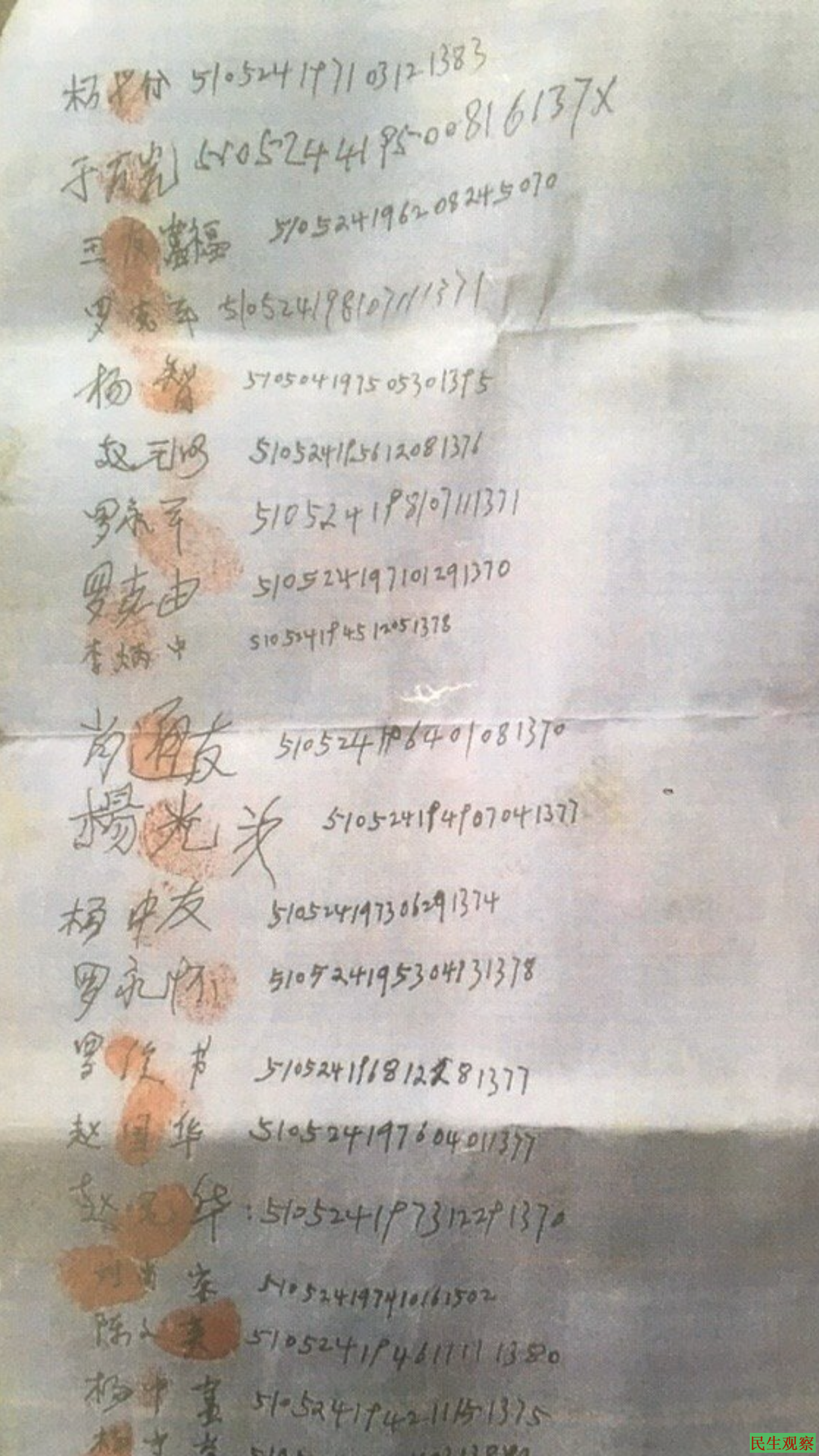四川泸州叙永县大石乡旺龙村群众代表:李增文、杨聚尧、邓盛世、罗永怀、彭计庭、杨玉峰、赖华均、罗俊书等