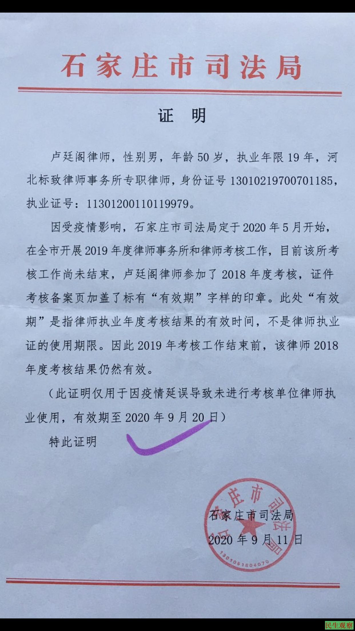 石家庄市司法局,以肺炎疫情为由,推迟年检考核。往年5月即告结束,今年6月才开始,且持续至今,已到第18批了啊!不仅如此,没有年检的律师,办案要开证明,开证明只开10天期限,导致我已开4次证明。在开第5次时,司法局律师处官员的官僚作法,给我造成很大的麻烦和损失,已涉嫌违纪、违法和侵权。