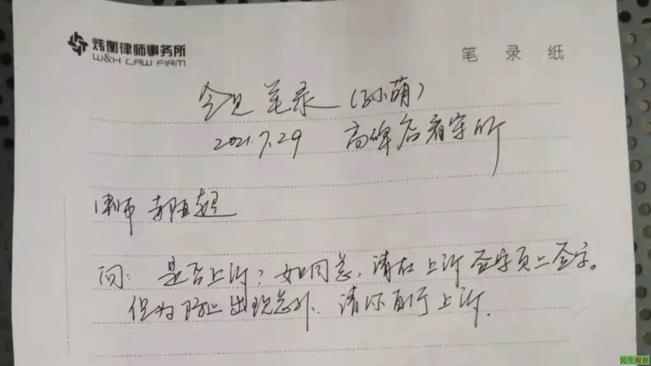 会见孙萌后,因疫情期间,隔着玻璃,我只能到会见室外侧的值班室,把“上诉状签字页”和《会见笔录》交给值班警察,让他去拿给孙萌签字。——以往几次会见,每次让孙萌签《会见笔录》都没问题,他们会把孙萌带到这个值班室,签完后直接让我拿走,——但今天,警察扣下了我的材料,让我离开会见区,去到最侧办手续的值班室去等。