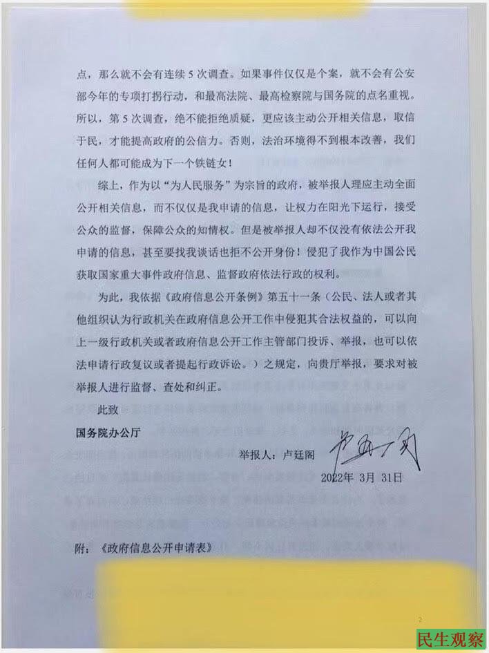 卢廷阁律师:“铁链女”事件信息公开进展3 |