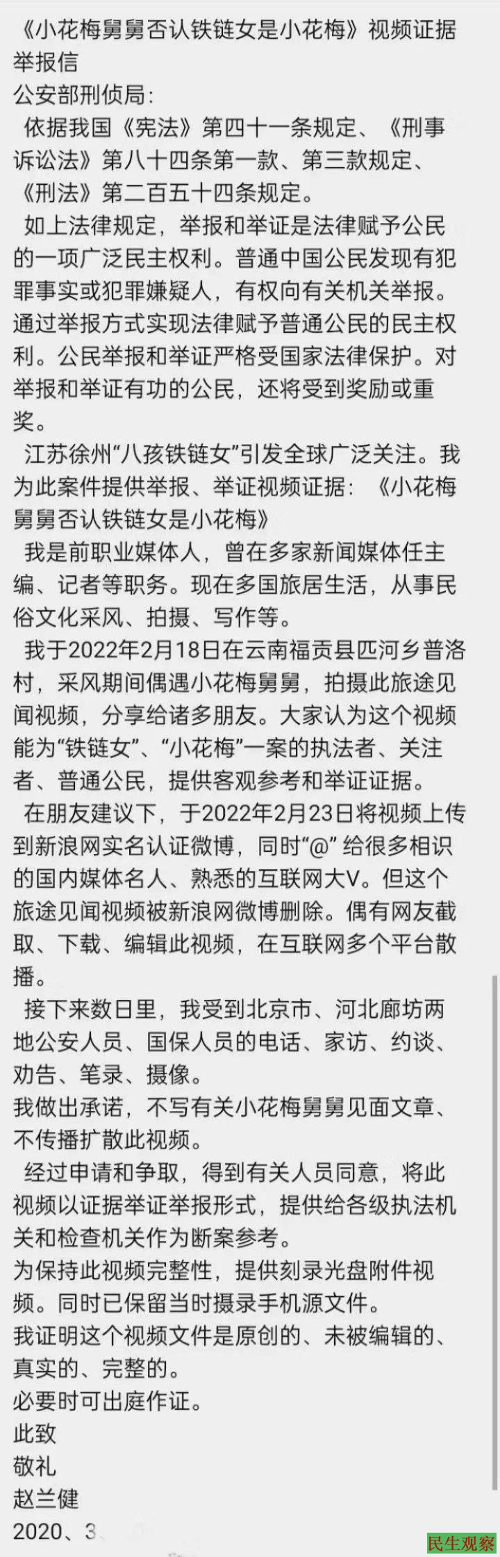 那么,赵兰健向有关部门寄送的这一封视频举报信,相信一定有助于事件抵达真相。