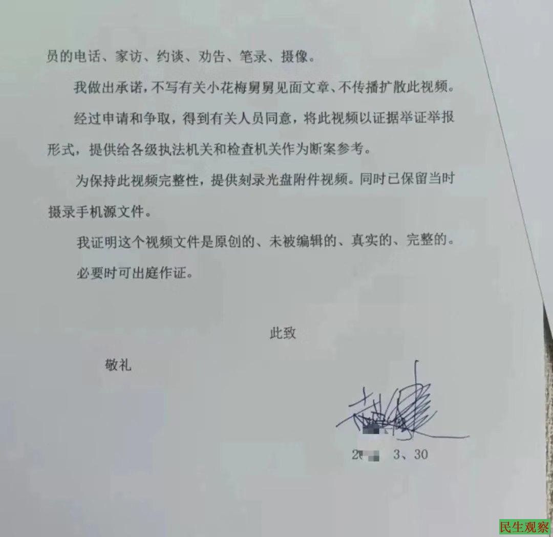 有人在采风期间,偶遇了小花梅舅舅,小花梅舅舅否认小花梅是铁链女,于是就录了视频,向执法机关和检查机关寄送视频证据。