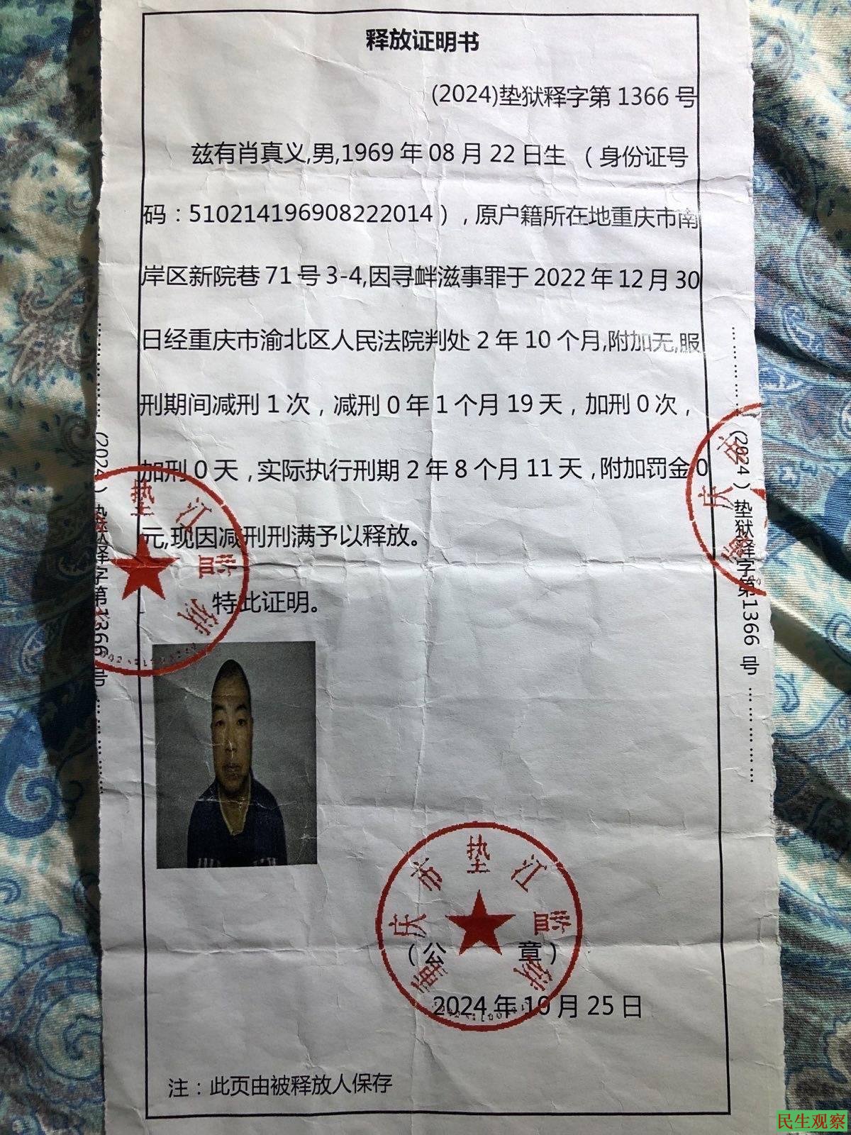 我是2022年2月14日上午在住家附近突然被重庆市两江新区康美派出所抓捕的,当时出示的传唤证上载明我涉嫌寻衅滋事。因当时是疫情期间,接下来就去两江新区第一人民医院做了核酸检查,然后押至两江新区公安局的留置审讯大厅,对我的各项生物指针进行采集,包括指纹、掌纹、血样、眼睛虹膜、声音等等,当天坐在审讯椅上连续对我进行审问至十一点多钟,第二天一早又接着审讯,下午即押往了渝北区看守所,这一待就是近一年半。当年9.20开庭,直到12.30才拿到判决书。开庭前法官陈长明,说我的代理人不符合要求,取消了他们为我辩护的资格,同时提出要为我提供援助律师,被我当场拒绝;我要求他以书面形式告知原因,他不予理睬。开庭时甚至他们参与旁听也不允许(我的代理人之一钟声牛这样说)。一审判决以后,为了让我的家人尽早的拿到判决书的内容(因法院不将判决书给我的家人及代理人),我不得不将判决书原件(看守所的管教说寄给他们只能是寄原件)交与他寄出,结果花了两个多月(元月初寄,三月二十几号收)。23年7月份执行到垫江监狱服刑后,信件更是难以寄出和收到,比如23年7月份我大姐因为做手术而未能来探视我,于是她让她女儿也就是我侄女寄信告诉我情况,就是这样一封普通家信也被监狱扣留,直到我大姐于九月份拖着虚弱的身体来监狱探视我,我才知道这一情况,通过监狱检察室投诉,他们才告诉我说,信件内容因涉嫌违规已被销毁。
