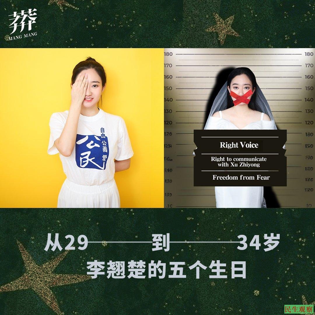 1月13日是翘楚的生日,但在过去的五年间,她却无法度过一个安稳的生日。今天的李翘楚即将34岁,却因与许志永的通信权被非法中断,无法收到爱人的祝福。我们回顾五年以来翘楚的遭遇,以期送上对ta们的祝福和对自由的向往。