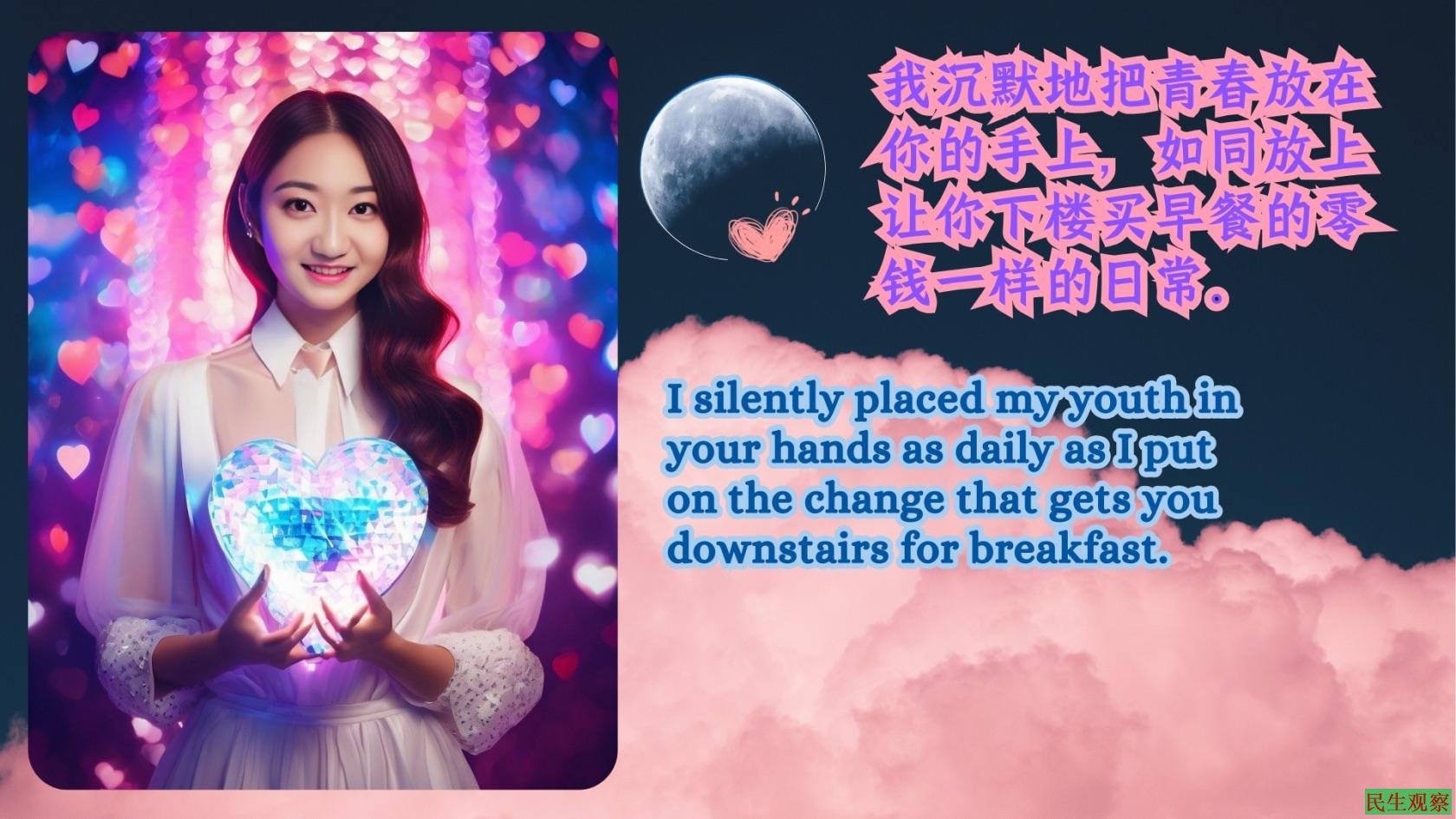 這五年,我學會了如何愛。愛不僅是牽絆和守護,也包括解放和成全。不僅是爲你遮擋、幫你拒絕現實的殘酷,更是給你面對殘酷的信心和底氣。成全你的自由選擇,解放你自願去選擇喫不飽、穿不暖、受苦受難的權利。支持你在殘酷中活出自己的常態——有情有義,有血有肉,有鎧甲有軟肋。再灵魂的伴侣,也无法真的分担彼此正在承受的苦难。但可以穿透墙内外的是自由意志和永恒的爱。让我们的愛遠超越那自以為主宰我们命運的人的恨。