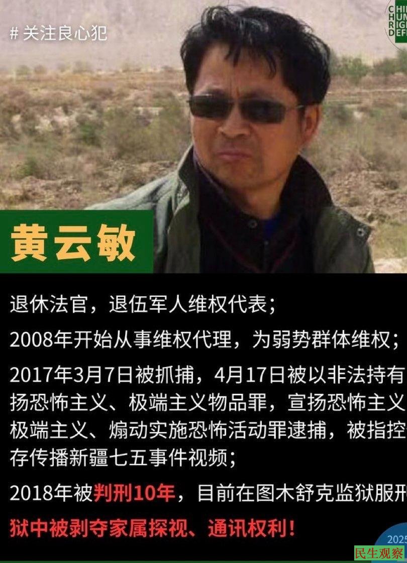 此后不久突遭变故。垦区法院在不通知外界和律师的情况下,又违背程序搞了一次秘密的开庭,当庭宣布“两罪成立”判处黄云敏有期徒刑10年。送到监狱之后,不允许家人会见,不允许律师拜访,不允许给家人写信。原来,在撤诉后来自兵团政法系统的电视电话会议上,有领导直接点名喀什垦区检察院对黄云敏的案侦办不力。这便是撤诉后又秘密开庭的真实原因。