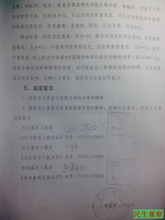 被偷偷鉴定为“偏执性精神障碍”的四川女人李金兰