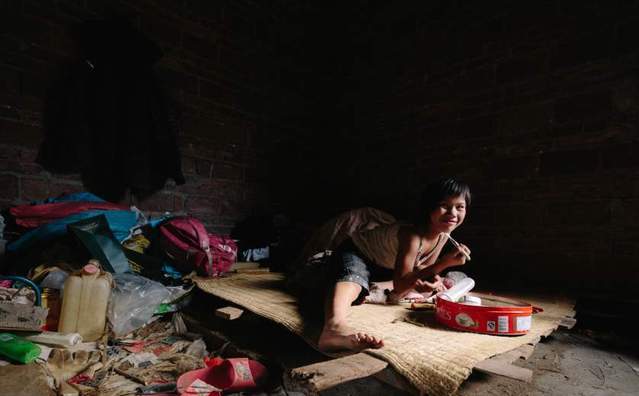他们住在一个茂名农村的一个毛坯房中。赤裸的脚看起来触目惊心。