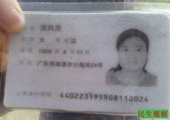 梁凤英,今年56岁,家住广东省南雄市小梅关24号,原是广东省韶关市南雄二轻棉织厂的正式职工,被厂方无故停职后就四处奔波,希望有关部门给她主持公道。坚持上访近30年之后,她不但没有讨还公道还被以“患有精神病”为由关进了精神病院,被强制打针、吃药,由于药物的毒害使她丧失了劳动能力。