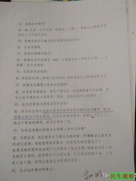 本刊随后询问徐维宝“作案”原因时,徐维宝说,“我也不知道做什么案了,他们从来没给我说过。他们是不讲道理的,法律就是忽悠,玩弄人民的手法,监督机构都成了摆设,就说明制度出了问题,要想访民无访,只能让人民监督!
