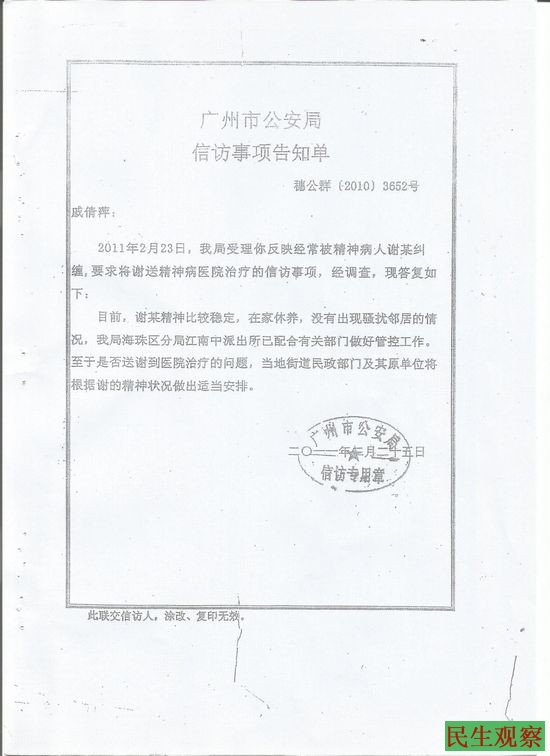 要求将精神病患送医 广州戚倩萍自己却被关进医院 |