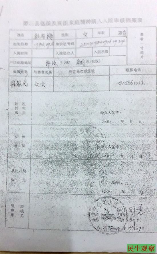 黑龙江访民韩帮梅被两次送精神病院治疗检查未见异常