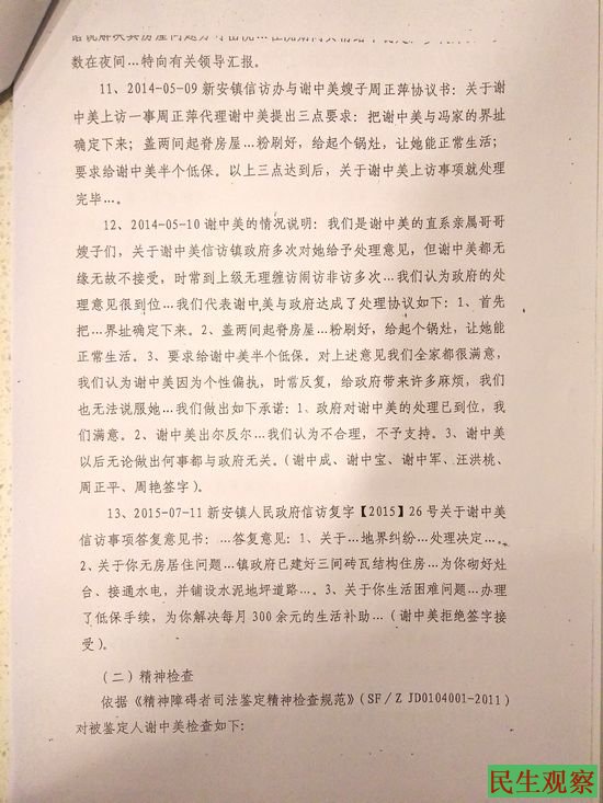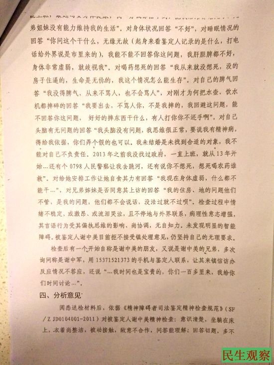 就在谢中美在医院受罪的时候,镇政府给她弟弟送去了连云港正达司法鉴定中心出具精神司法鉴定书,她的家人这才知道了谢中美被关在精神病院。9月9日谢中美随家人离开了医院。