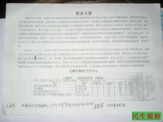 儿子被警察带走后死亡 无锡尤宝芬遭三次精神迫害 |