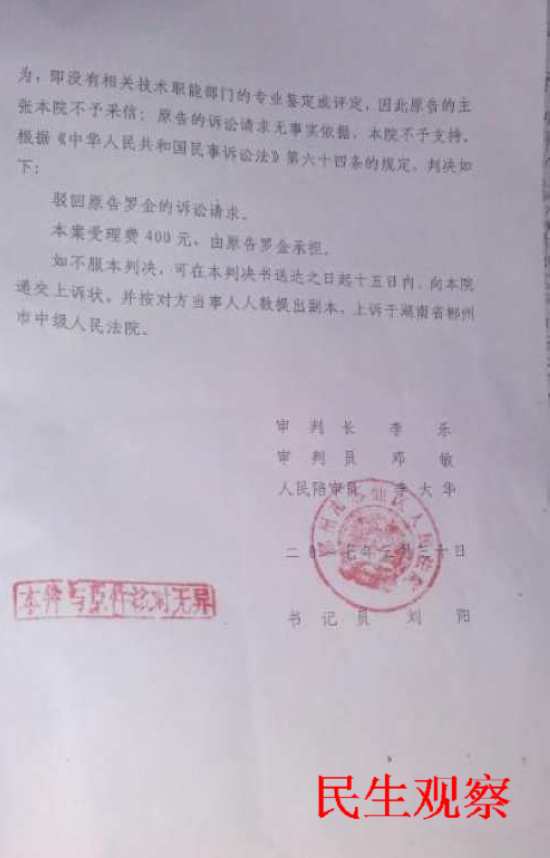 2017年3月30日郴州市苏仙区法院以证据不足驳回罗金的诉讼请求。现罗金正在积极筹备上诉中。