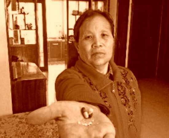 每当想挪动身体挣扎时,儿子就用脚踩她的头