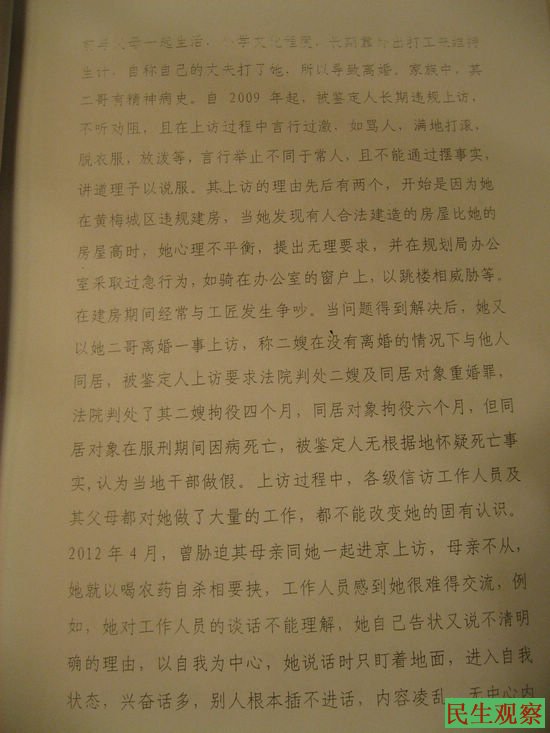 2014年1月29日,也就是2013年农历腊月29日,何燕坐上开往北京的火车,大年30到了北京,开始她的上访旅程,在《中国精神卫生健康与人权》月刊采访她的前几天里,她已经去过公安部、最高检,接下来还要去最高法、国务院法制办等机构继续提供申诉材料,这就是一个弱女子的新年开始。