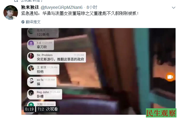 今天,持续关注“泼墨女孩”事件的网民“民主蜜蜂”发文称:此前华涌曾声言“老百姓有说话的地方吗?要抓就抓,放马过来吧!如果华涌再为老百姓说真话再进监狱我就认了,大不了就一死。我和董建彪想告诉大家,用强权、用监狱、用国家机器镇压异议的声音,这不会让老百姓恐惧的,反而会让老百姓压力越大越敢站出来...”今天华涌和董建彪果然被抓捕了,他们把真相昭示于世了,中共警察再想以黑治董就困难了。感谢华涌和董建彪!