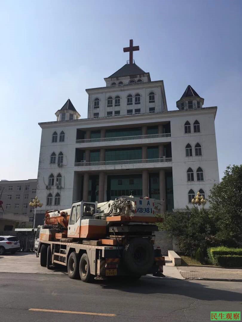 【民生观察2018年8月28日消息】本网获悉,河南省郑州市荥阳基督教中心教堂十字架于8月27日遭政府强行拆除,多名网友拨打挖掘机司机电话谴责其破坏教堂行为,司机最初称是“党和习近平让他干的”,后经不起众多网友质疑,司机称自己“不干了”掉转车头走了。此次政府强拆教堂十字架未遂。