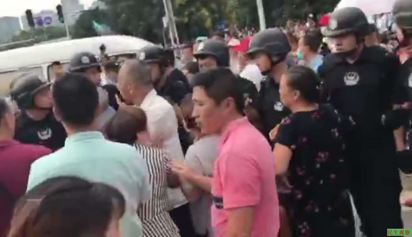 【民生观察2018年9月5日消息】本网获悉,湖北武汉光谷开发区关山大道附近数千居民,因反对政府在居民区兴建110千伏变电站,于9月5日上街抗议,警方随即派出了数百名警察前来驱赶,过程中有一位老人被推到在地,引发大量群众与警方爆发冲突。