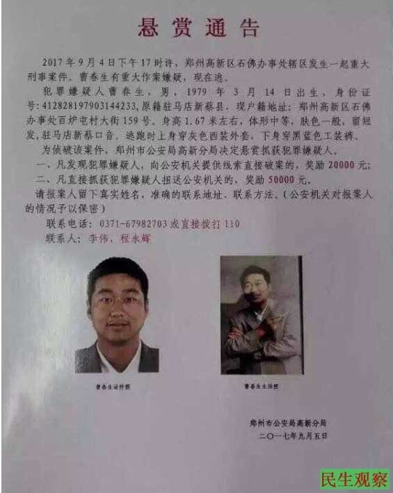 据知情人透露,曹春生在短时间内已经经历了四次强拆,所住的房子之前已经经历过两次强拆,最后在其坚决维护下,强拆未遂。还有一次强拆是曹春生经营的废品收购站。据称,曹春生是废品回收商人,若干年前在村中租了土地经营废品回收业务,案发前几个月,废品收购站遭到高新区石佛街道的暴力强拆,分文未赔偿。当时,几百人的强拆队伍在强行控制曹春生后将废品收购站的经营场地夷为平地,政府还派人用大型挖掘机将收购站价值近两百万的废品埋在了废墟之下,那次强拆令曹春生财产总共损失至少两三百万人民币。曹春生经历的第四次强拆就是上述酿成一死一伤悲剧的案件。2017年9月4日下午四五点,在外办事的曹春生接到家人电话指政府派出一两百人强拆队伍及大型拆建机械车辆正准备动手强拆他家房屋,闻讯赶到的曹春生与现场强拆人员发生打斗,寡不敌众的曹春生用刀捅死一人捅伤一人,由此酿成悲剧。