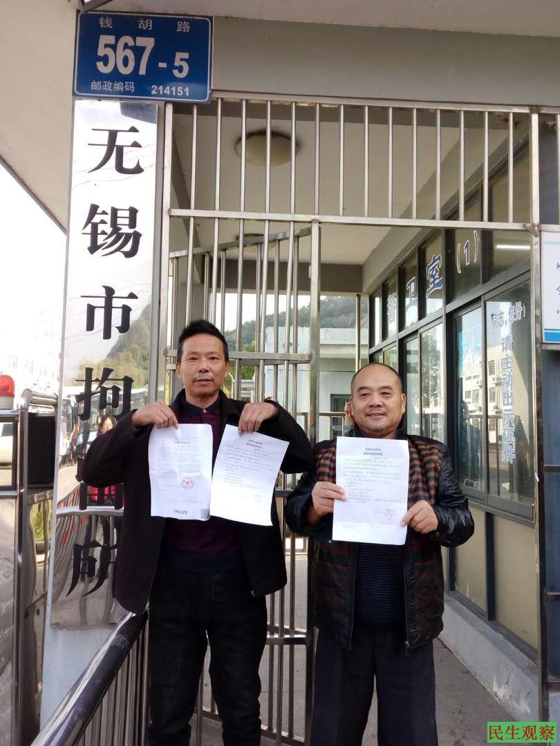 据悉,11月17日上午九时许,倪满良、支伟忠被无锡市拘留所解除拘留,无锡维权人士程茂娟、苏惠娟、尤桂凤、吴士兴、沈建群、邹惠芬、尤建英、沈琴芬、李梅芳等人前去无锡拘留所迎接两人重获自由。