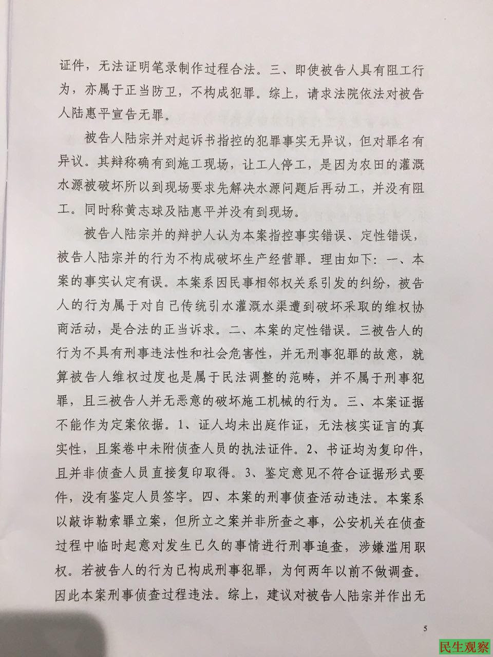 林洪楠律师表示,陆惠平一家奋力保护农田灌溉水源,合情合理,同时也保障了其他农户农田的灌溉权益,但却遭到屏南县当局的打击报复,构陷获此重刑,实属对社会的不公和威胁。农田是农民的立根之本,水源灌溉是农田的必要条件,关系到农户的生死存亡,陆惠平一家依法维权却被屏南县当局任意羁押逮捕,家庭完全坍塌。一个法制文明的政府,首要任务是应该享有尊严的劳动和生活,安居乐业,屏南县当局如此践踏人权,严重违反《宪法》以及《世界人权宣言》,在任何一个法制国家都是荒谬且违法的。