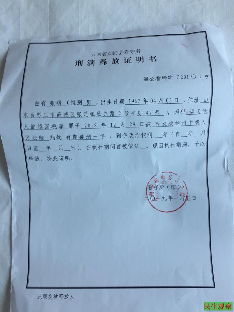 随着张磷的出狱,至此,被西双版纳当局一手炮制的、将张磷以“运送他人偷越国(边)境罪”莫须有罪名治罪获刑一年的案件暂告一段落。