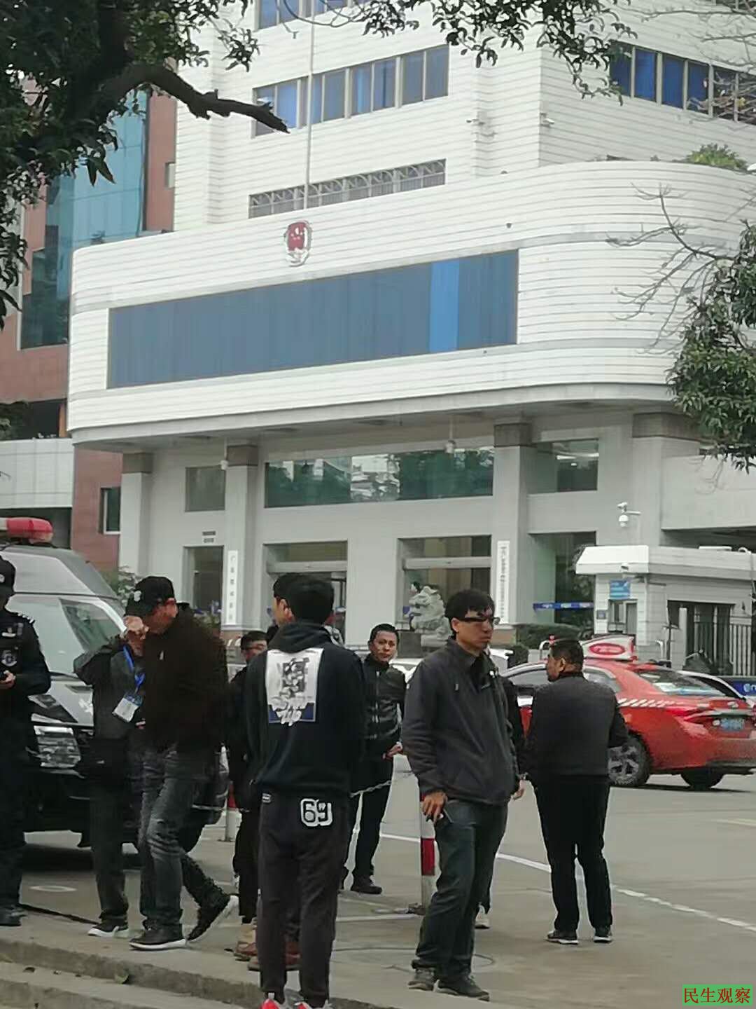 上午七点多,位于广州白云区政民路的广东省司法厅门前已有大批警察和便衣人员在场戒备,不时对可疑过往车辆及行人截停进行检查。