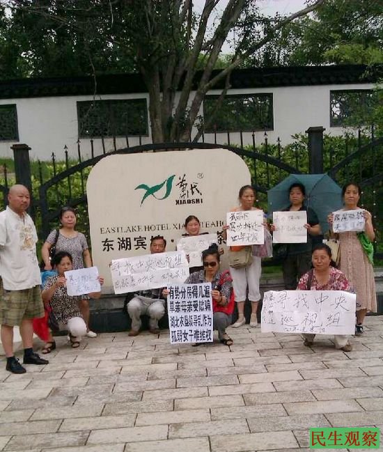 民生观察工作室2013-6-27消息:今天上午,武汉市的部分访民们,获悉中央巡视组入住在武汉市武昌东湖宾馆。于是,大家就从四面八方赶到宾馆门前聚集伸冤,有访民无奈的说,他们这是在给地方的“贪官污吏们增添光彩”。