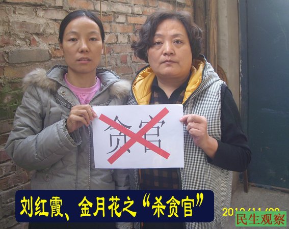 今天,在京访民在左右两派的影响下打出了“杀贪官”、“官财公示”等标语。