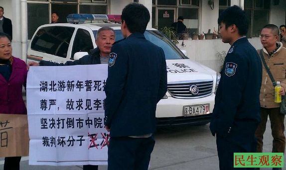 今天,武汉市花楼街一批进京访民又来到此处,继续请愿抗议。