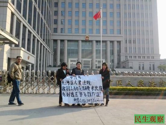 最新消息:今天下午3:30分许,维权人士肖青山、李小玲、马胜芬、谢云碧等人,又来到了广州市天河区人民法院,再次向该院递交了他们希望为刘远东、郭飞雄案出庭作证的书面申请书,该法院的工作人员最后接收了该申请书。