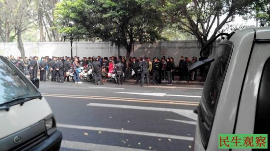 民生观察工作室2014-2-18消息:今天下午2点钟左右,广东省政府门外出现几百人的大游行,数百警察到场戒严堵截。据广州维权人士张圣雨告诉本工作室说,今天下午2点钟左右,在他路过广东省政府门前时,看到有约几百人在省政府门前游行,同时也有约数百名警察在拦截围堵。经他打听后得知,这几百名游行者大多都是在广州市贩卖家禽鸡鸭的个体户,这些个体户们反映,近期由于南方偶有禽流感的个案报道,广东省政府就“杯弓蛇影”的肆意扩大防范范围,在未经过听证、调查、讨论的情况下,政府就拍脑袋决策,断然下令不允许他们经营鸡鸭家禽,从而导致他们失业及生活困难。他们要求政府多下基层,经过充分科学的调研后再制定科学合理的防范禽流感的对策与范围,而不是坐在办公室里拍脑袋想当然的武断决定,一刀切的禁止一切家禽经营活动。最后,这次游行活动在数百名警察的围追堵截下被迫结束。