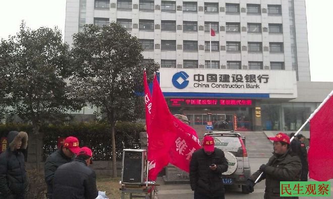 2014年正月十五元宵节这一天,河南安阳建设银行买断下岗职工在这一天早上9点到了安阳市支行进行新年的第一次维权活动,有100来人参与维权一直到今天还在继续,在17号要维权人选五个代表进 行谈话,五个代表刚进入银行大楼还没有到办公室谈话就被几个手持狼牙棒的保安围住殴打。
