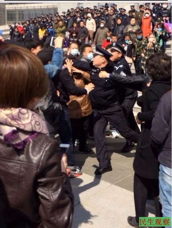 十点钟的时候,维权现场出现约1000多警察,并开始开始动手抓人,其中抓了一些女同事与孩子,维权抗议开始升级,警察开始驱散维权人群,不离开者都抓上公安警车,抓走6人到现在不知道去向。