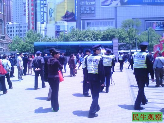 星期三是上海访民集体到上海信访办走访的日子,连续两周200号周围百余警察,特警、保安和便衣严阵以待,一步一岗,以前车水马龙的200号前一下子变得门庭冷落,行人不得停步,稍停片刻即遭驱赶,11点后大批警察开始清场,在地铁出入口,警察将从人民公园内清出的访民继续朝地铁入口处赶,有一过路的白衣女子,不满成群警察驱赶自己和访民的粗暴态度,与警察们较起劲,结果遭推搡差一点挨揍,被身边的访民拉开。