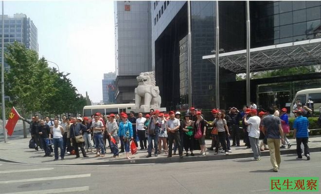 四行维权今天继续在各总行与银监会。今天周末维权断友大部分在休息,还有一 部分没有休息仍然在继续,早上八点半左右断友们来到银监会进行维权中午又来到建总行下午三点半左右又步行到工总行,银监会与建总行之间只有一千米很近几分钟就到,建行与工行之间也之隔一条街而已我们同样是散步走过金融街到工总行。