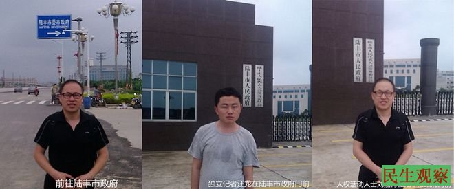 为了一睹腐败的成果——奢华的政府楼堂馆所,在此次探访之行的间隙,人权活动人士刘嘉青与独立记者汪龙一道前往位于乌坎村旁的陆丰市政府大楼外、陆丰市财政局大楼外参观。宽广的政府大院和气派的政府大楼在一大片荒凉的土地中显得十分扎眼,而“黄”宫——陆丰市财政局的大楼则是用了类似于美国国会大厦的椭圆形顶盖,显得十分奢华与霸气。但是,这些政府大院的墙外却杂草丛生;甚至于陆丰市政府对面的河堤栏杆,也仅仅只修了陆丰市政府对面几十米的一段,而旁边的河段却没有任何栏杆;与此相对应的还有陆丰市其它路段坑坑洼洼的道路以及十分不完善的基础设施。